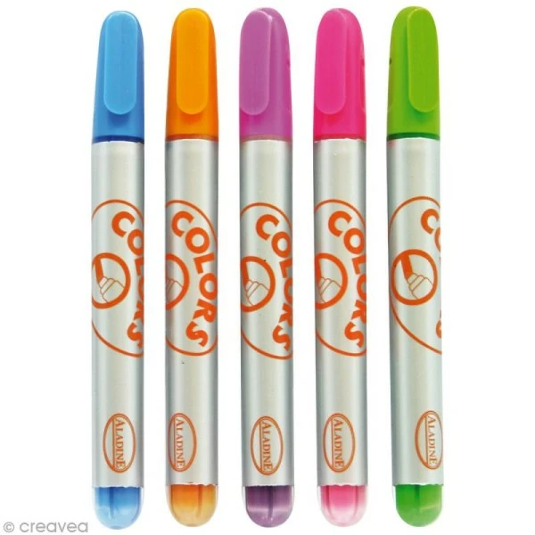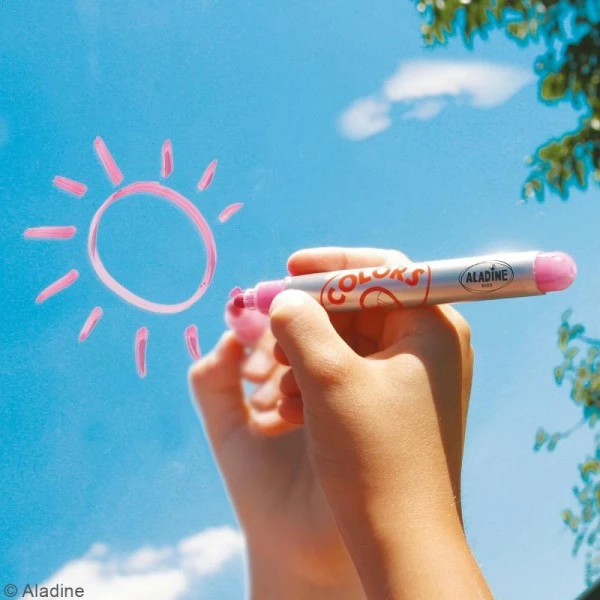 Assortiment de 5 feutres craies liquides spécialement conçu pour écrire sur les vitres et les miroirs ! Vous trouverez dans cette boîtes les couleurs suivantesviolet, rose, jaune, vert et bleu. Idéal en période de fêtes de fin d’année, les marqueurs craies vous permettront de dessiner de jolis décors sur vos fenêtres. Les couleurs sont particulièrement couvrantes et sont effaçables à sec.