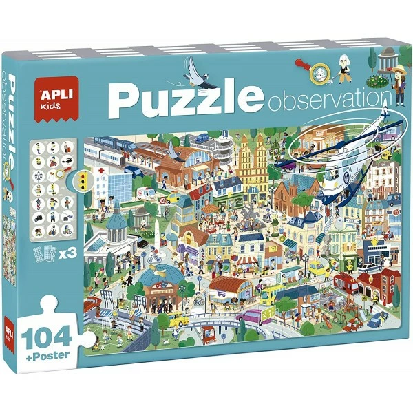 Description de Puzzle – Enfant – 104 pièces – Thème ville – Apli Kids
