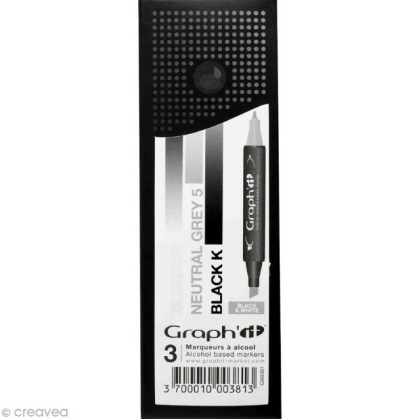 Données techniques pour Assortiment Feutre à alcool Graph’it Dégradé black & white x 3