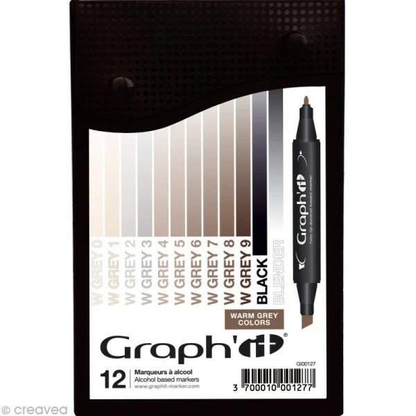 L’assortiment de marqueurs Graph’it Warm grey colors est composé de 12 feutres à alcool double pointe, idéals pour les dessinateurs, les srappeuses et les étudiants en Beaux-Arts. Comme le Copic ou le Promarker, les feutres Graph’it Warm grey colors vous faciliteront la colorisation de tous vos dessins.