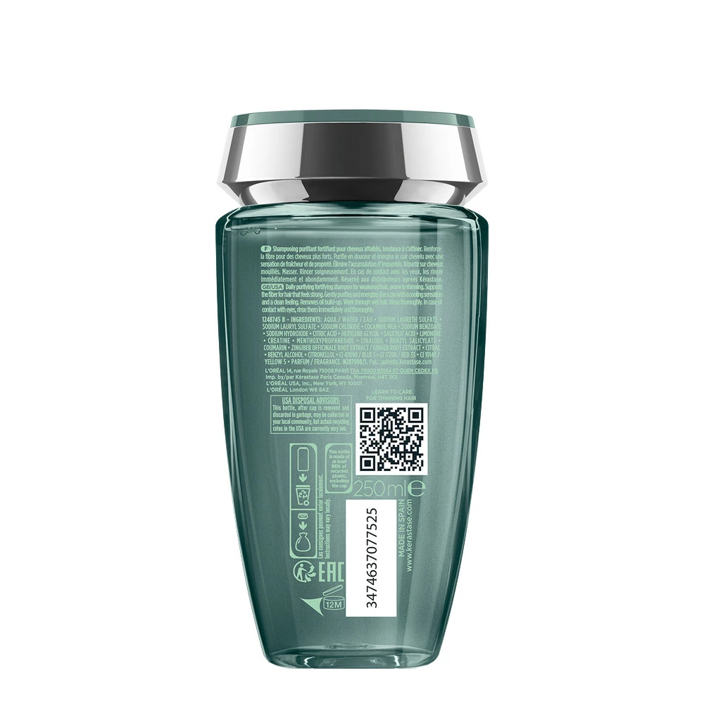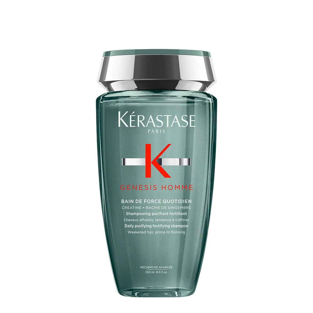 Bain De Force Quotidien Genesis Homme Kérastase 250ml : shampooing purifiant fortifiant pour les cheveux affaiblis, tendance à s’affiner. À la Créatine + Racine de Gingembre.