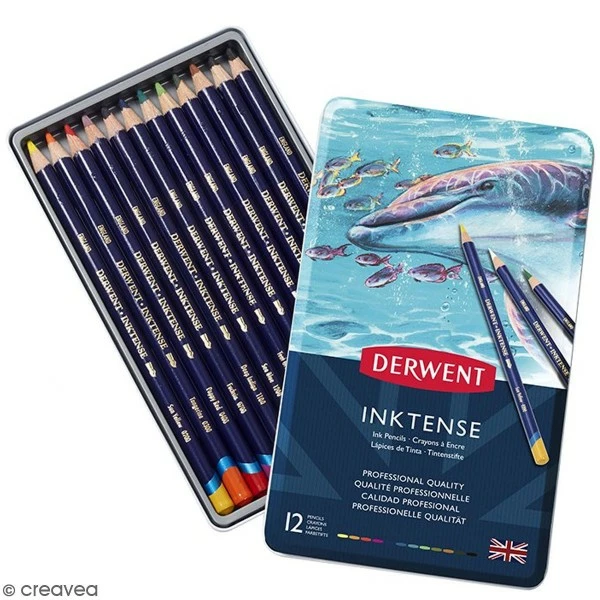 Voici 12 crayons de couleur Inktense dans une boîte en fer pour dessiner tout ce qui vous passe par la tête dans de belles couleurs intenses et couvrantes. Ces 12 crayons de couleur aquarellables Inktense sont des crayons de couleur à encre de haute qualité spécialement conçus pour tous les usages. Que vous soyez un professionnel,un étudiant en dessin ou un dessinateur chevronné, ces crayons de couleur sont faits pour vous !