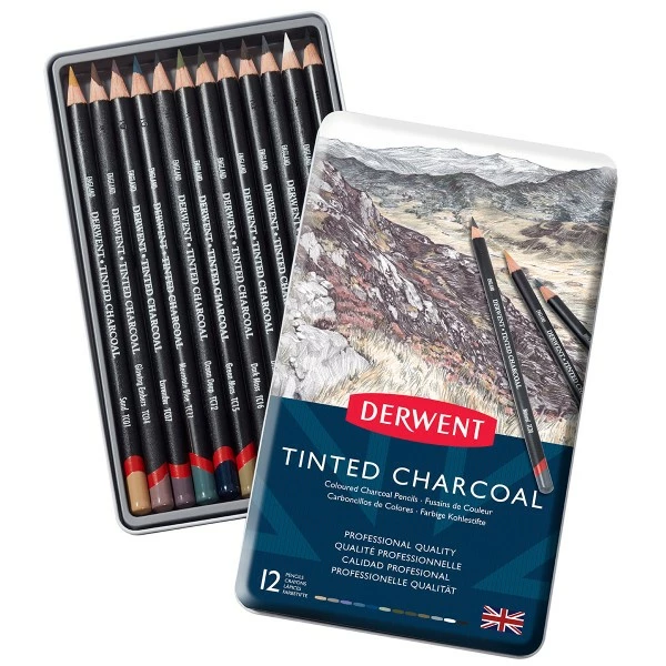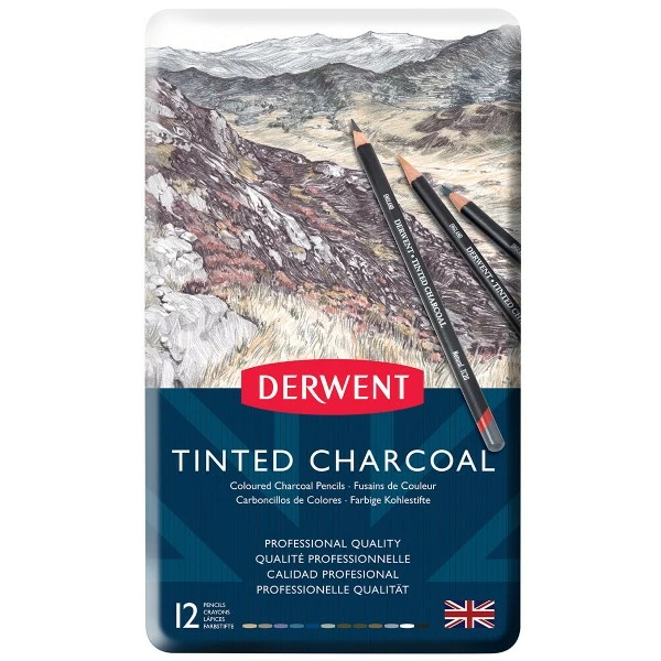 Description de Boîte de crayons de couleur fusain – Derwent Tented Charcoal – 12 pcs