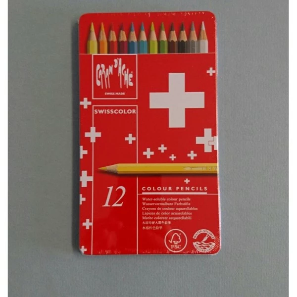 Boîte en métal contenant 12 crayons aquarellables avec une mine tendre ainsi qu’une bonne résistance.