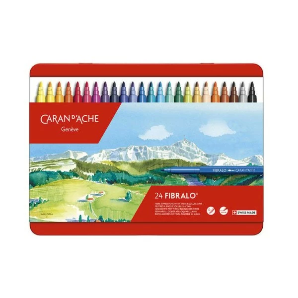 Description de CARAN D’ACHE – Feutre “Fibralo” aquarellable – Boîte métal de 24