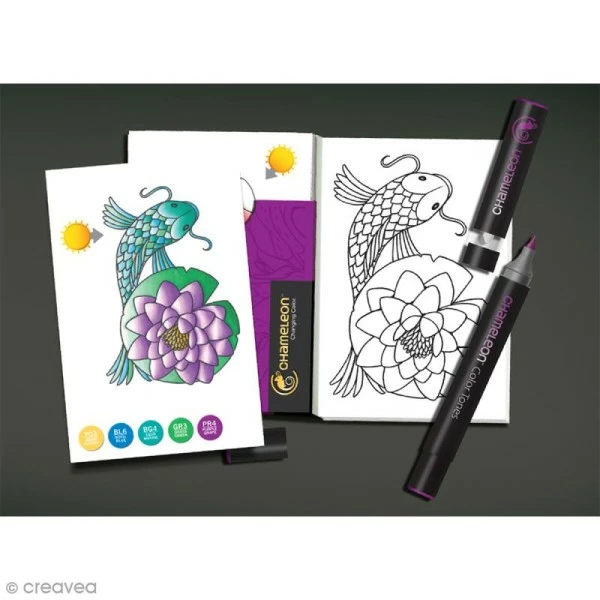 Ces 16 cartes Chameleon à colorier de 8 designs différents en 2 exemplaires, sont imprimées sur du papier de qualité supérieure et spécialement conçues pour l’utilisation de feutres à alcool. De plus, vous trouverez sur chacune des cartes à colorer, des indications quant aux couleurs Chameleon à utiliser.