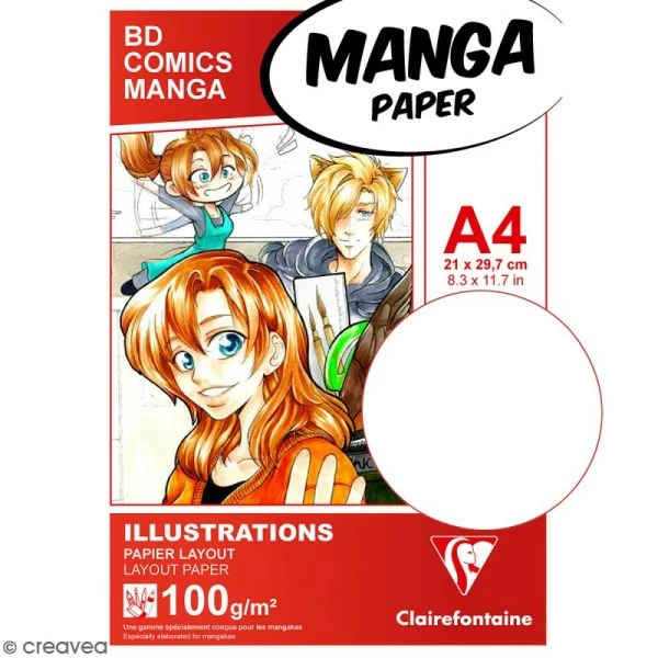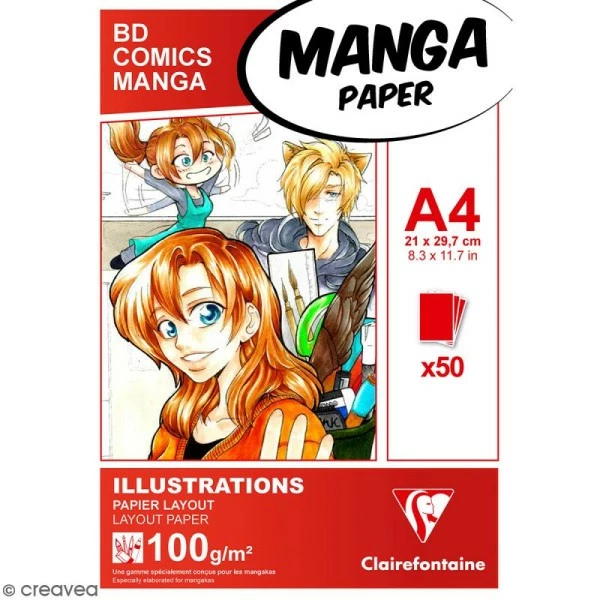 Ce bloc de papier Layout Manga Paper A4, de la gamme Illustrations de Clairefontaine, est spécialement conçu pour les mangakas ! En effet, ce papier est dédié à la réalisation de manga et de ses différentes scénettes. Traditionnellement, le manga est dessiné en noir et blanc, à l’aide de plumes et d’encre de chine. Ainsi, le papier se doit d’être épais et résistant.