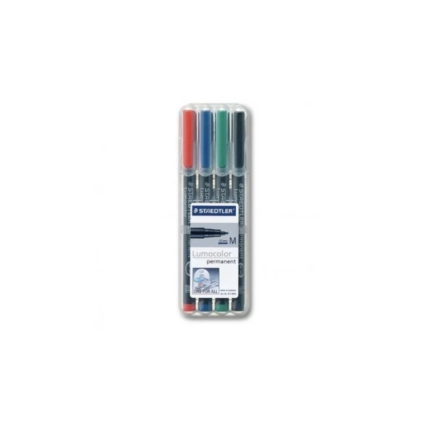 Coffret de 4 crayons staedtler lumocolor permanent de 1.mm ( pointe m). Ils sont indélébile et peuvent rester ouvert à longueur de journée sans sécher.