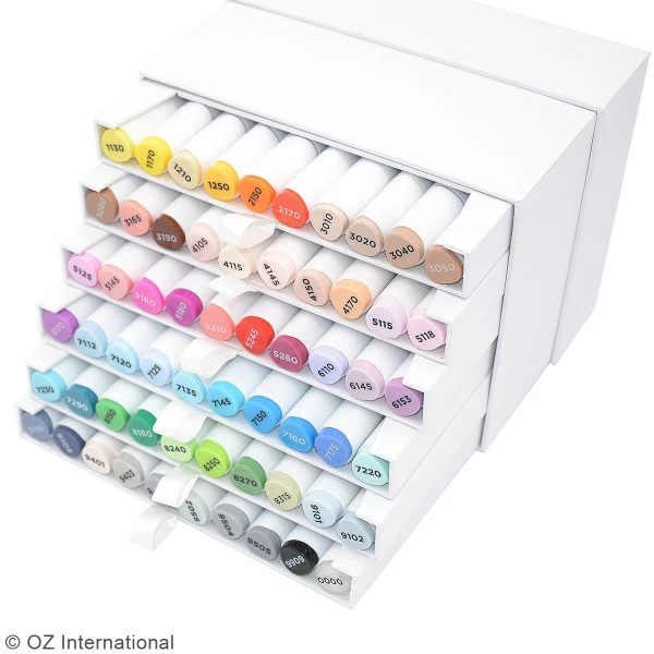 Ce set de marqueurs Graph’it Brush & Extra fine regroupe 60 feutres à alcools rangés dans un coffret dans laquelle vous pourrez ranger vos marqueurs par gamme chromatique et voir en un coup d’oeil la teinte dont vous avez besoin.