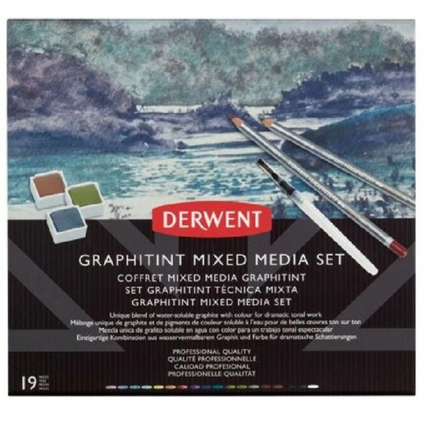 Description de Coffret Mixed Media Derwent – Graphitint – 19 pcs