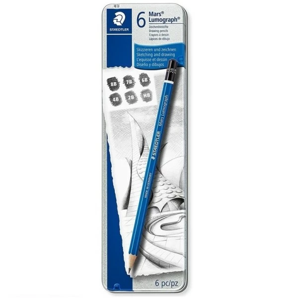 STAEDTLER – Crayons “100 Mars Lumograph” – Etui en métal de 6