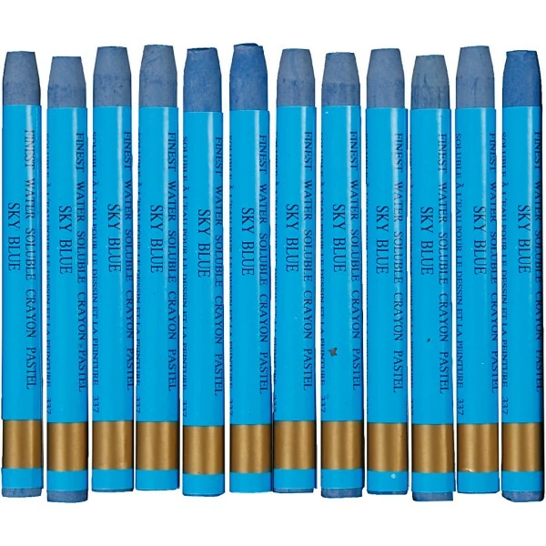 Description de Crayons Cire Aquarellables, Ép. 8 Mm, L: 9,3 Cm, Bleu Ciel (337), 12Pièces
