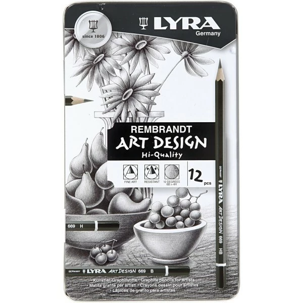 Crayons de dessin Lyra de qualité supérieure dureté 6B à 4H. Livrés dans une boîte en métal.