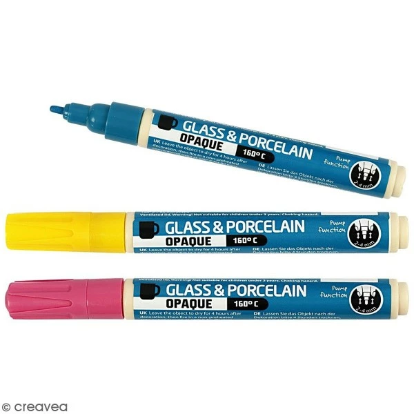 Feutre de peinture couvrante à base d’eau, pour verre, porcelaine, métal et céramique foncée.