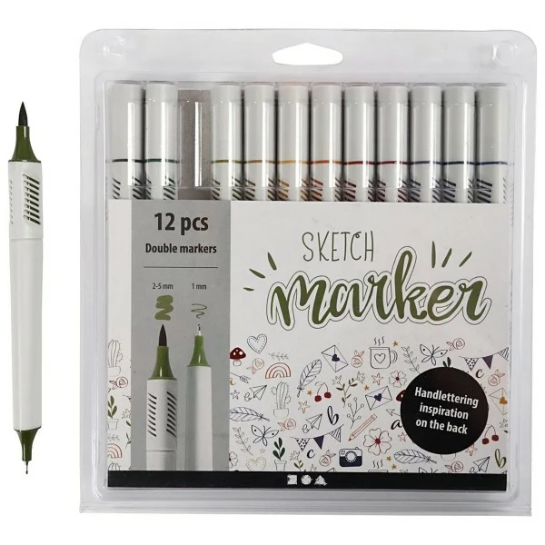 Description de Feutres de dessin double pointe Sketch Maker – Coloris basiques – 12 pcs