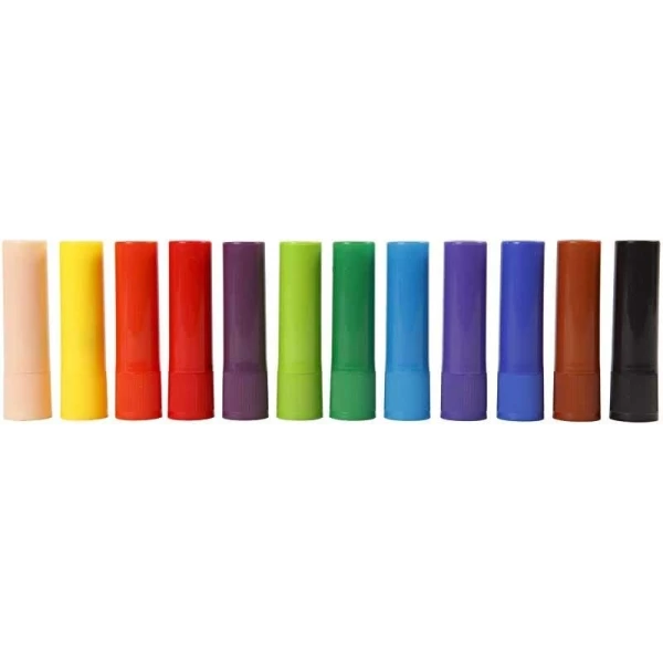 12 Maxi craies douces et lisses à la cire Colortime très pigmentés dans un étui à vis pratique pour les enfants.
