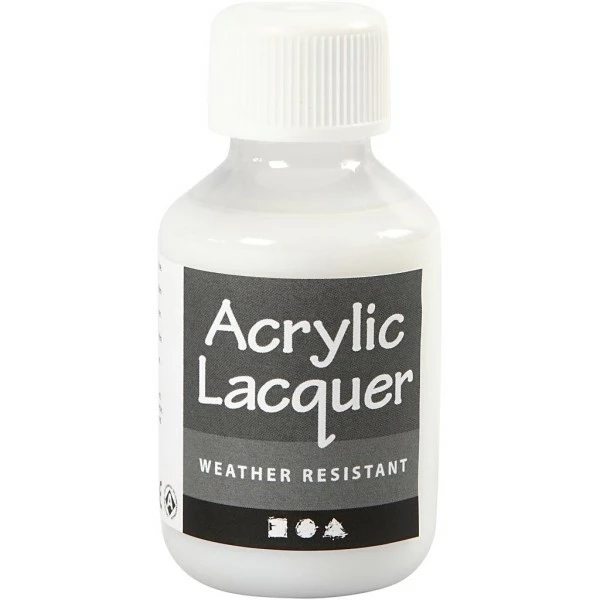 Vernis acrylique résistant à l’eau et aux intempéries. Appliquer sur tout support peint – transparent cristal après séchage.