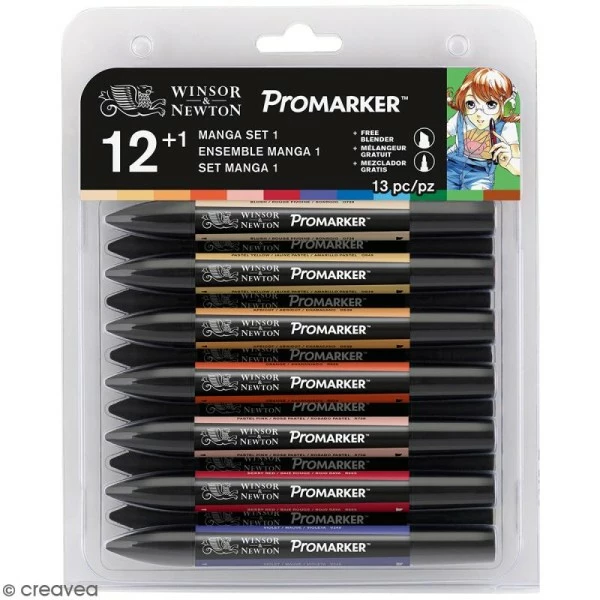 Le feutre ProMarker se présente sous la forme d’un marqueur à pointe large biseautée d’un côté et une pointe fine conique de l’autre. Le code couleur est indiqué sur le feutre afin de vous repérer facilement. Grâce à cet assortiment vous pourrez reproduire tous vos personnages de Mangas préférés !