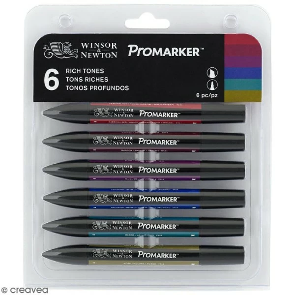 L’assortiment de feutres à alcool ProMarker Winsor & Newton est composé de 6 feutres à alcool double pointe dans des Tons riches, parfaits pour les dessinateurs, les scrappeuses et les étudiants en Beaux-Arts. Comme le Copic ou le Graph’it, les feutres ProMarker Tons riches vous faciliteront la colorisation de tous vos dessins.
