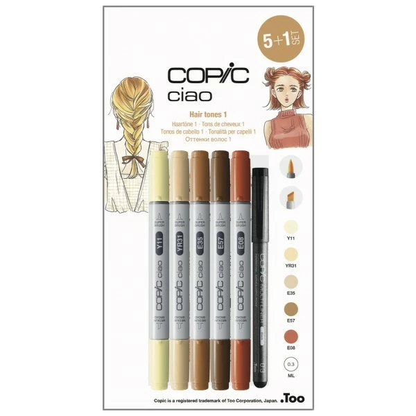Description de Feutres Copic Ciao – Teintes Cheveux 1 – 5 feutres + 1 multiliner