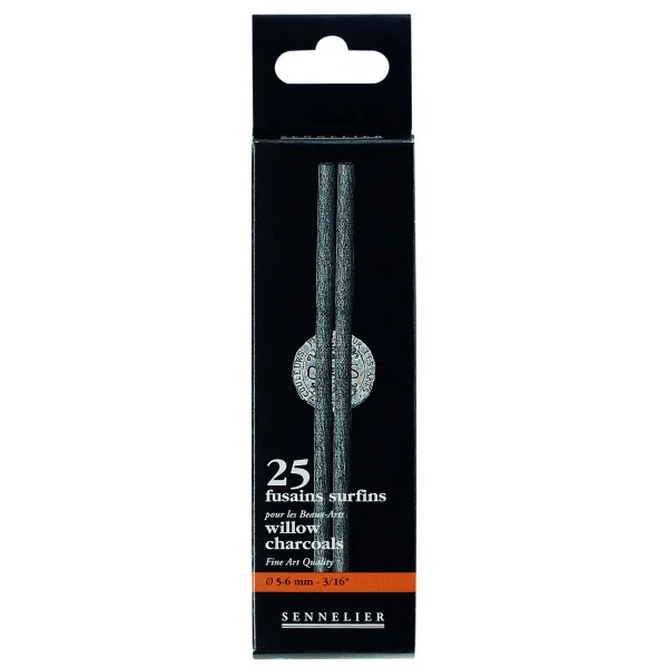 Description de Fusains – Noir – 5 à 6 mm – 25 bâtons – Sennelier