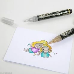 Le marqueur Graph’it est un marqueur à alcool composé d’une double pointe pour s’adapter au mieux à vos besoins de créations ! D’un côté, une pointe japonaise pinceau en fibres synthétiques, généreuse en ancrage pour les tracés plus ou moins épais ! De l’autre côté, vous pourrez tracer avec précision les contours et détails grâce à une pointe de 0,5 mm idéale pour tous les tracés fins !