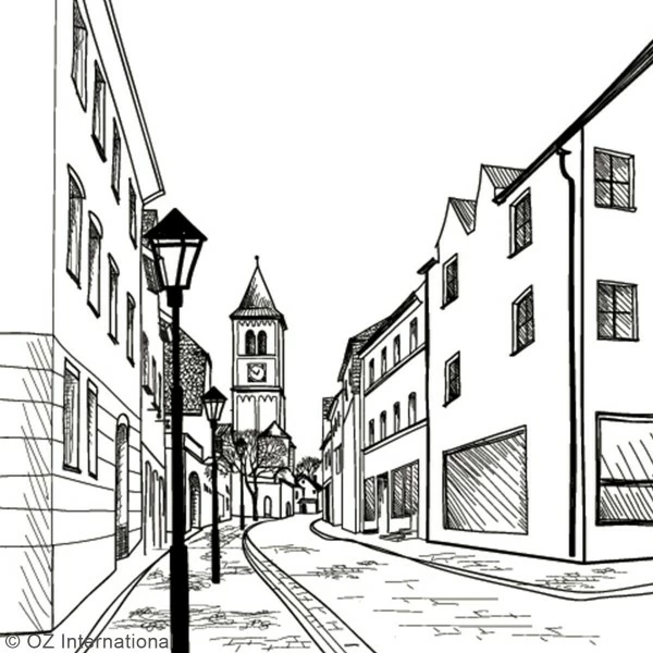 - Modèle : Rue en perspective frontale