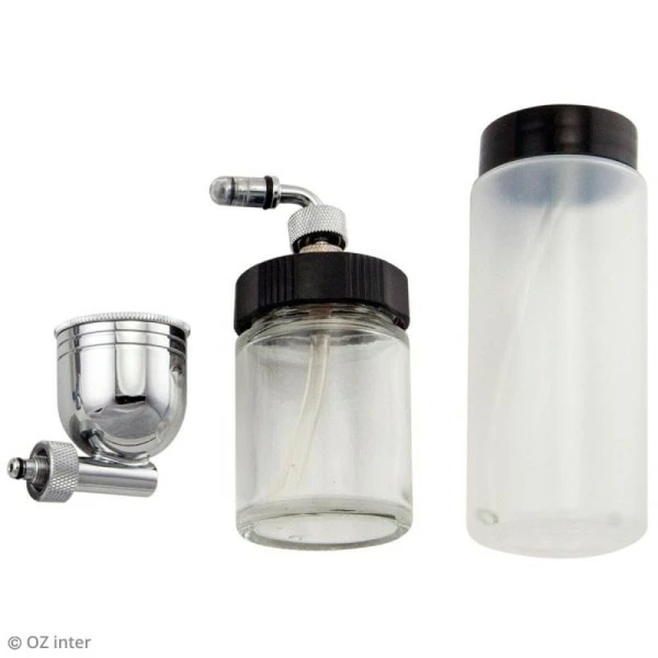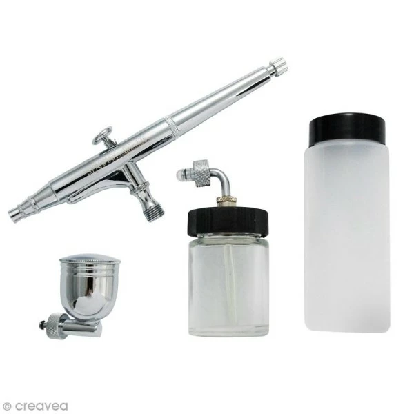 Set aérographe double action, avec fonctionnement par gravité et par aspiration :