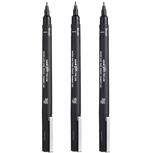 Description de Lot de 3 feutres de dessin uni pin – Pointe brush – Noir – Uni-ball