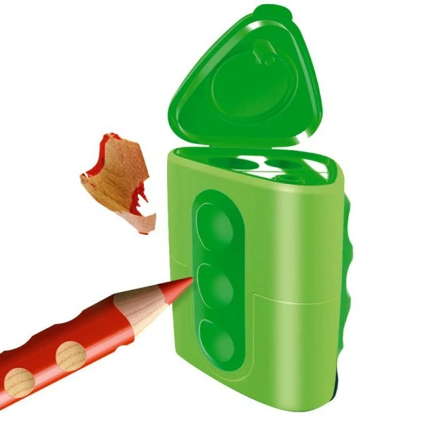 Ce taille crayon en plastique permet de tailler des crayons hexagonaux, des crayons ronds et également des crayons triangulaires de 8 mm et 11 mm de diamètre. Avec son design très actuel et son réservoir très pratique pour tailler proprement, ce taille crayon Groove 2 usages ne manquera pas de séduire vos enfants. Ils pourront le glisser dans leur trousse d’écolier et seront ainsi assurés d’avoir des crayons toujours parfaitement taillés, prêts à dessiner tout ce qui leur passe par la tête.