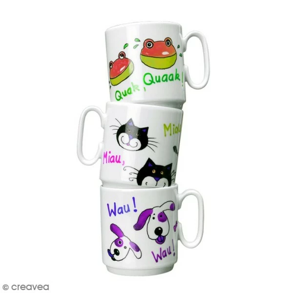 Avec le marqueur pour porcelaine Porcelain painter 1-2,5 mm, découvrez la peinture sur porcelaine avec cuisson. Vous peignez, vous laissez sécher 4 heures et vous effectuez ensuite une cuisson dans un four non préchauffé pendant 30 min /160° (laisser refroidir dans le four) !