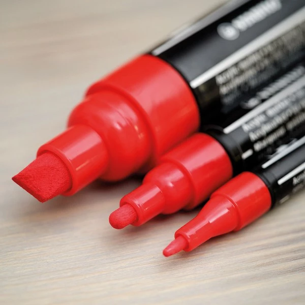 Les marqueurs acrylique Stabilo Free existent aussi en pointe moyenne (T300) et large biseautée (T800C)
