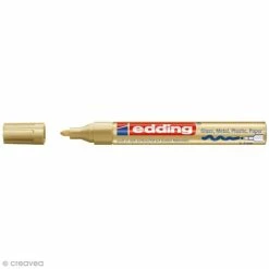 Ce marqueur peinture Edding 750 Doré est un feutre tout support, idéal pour appliquer de l’encre laquée parfaitement couvrante sur du verre, métal, plastique et sur toutes sortes de surfaces foncées. Rien n’arrête le feutre peinture Edding Edding 750 ! Comme par enchantement, vous métamorphoserez vos supports. Avec ce marqueur peinture Edding 750, vous transformerez en quelques secondes les choses ordinaires en cadeaux et décorations exclusives.