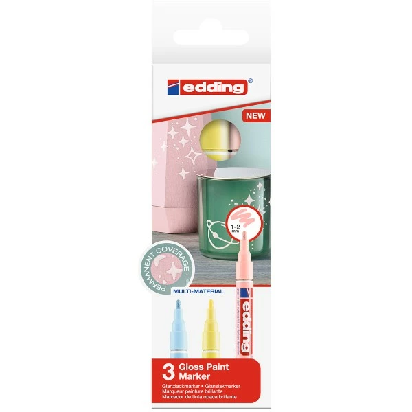 Ce set de marqueurs peinture Edding 751 contient 3 feutres peinture de coloris Pastel.