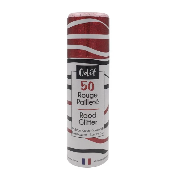 Vernis pailleté Rouge permettant de donner une finition pailletée sur toutes les surfacespapier, carton, bois, métal, plastique, polystyrène, verre… Il est vendu en spray de 125 ml.