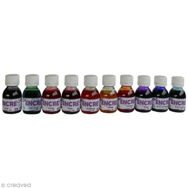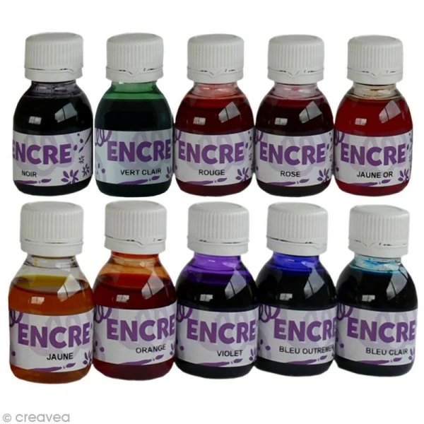 Ce lot de 10 pots d’encre à dessiner de 60 ml pourra s’appliquer sur de nombreux supports tels que le papier et le carton. Les encres à dessin bleu clair, bleu outremer, jaune or, jaune, rouge, rose, violet, orange, vert clair et noir pourront être utilisées de plusieurs manièresau pinceau, au stylo transparent, au rouleau, à l’éponge…etc. Cette encre composée à partir d’eau a l’avantage de rester stable à la lumière.