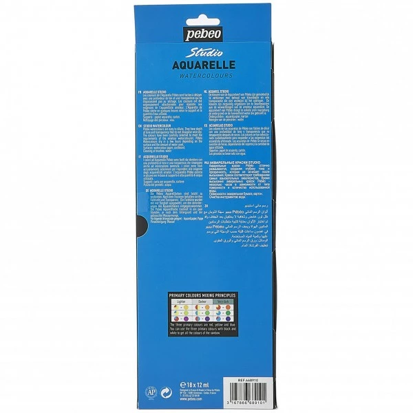 Données techniques pour Assortiment Peinture Aquarelle Pébéo – Studio Aquarelle 12 ml – 18 tubes