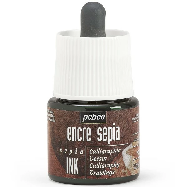 Tout comme l’encre de chine, l’encre Sépia Acrylique Pébéo 45 ml est idéale pour le dessin, le lavis (à diluer avec de l’eau) et la calligraphie. Confectionnée à partir de pigments, elle est stable à la lumière et indélébile, une fois sèche, elle résiste à l’eau et au gommage.