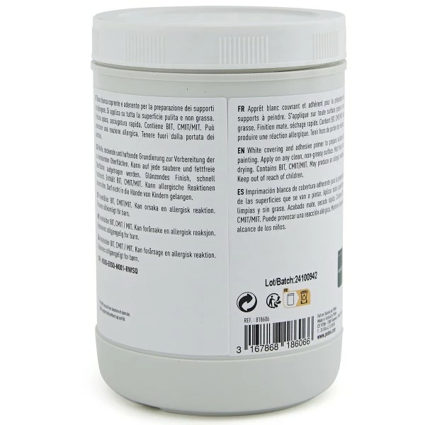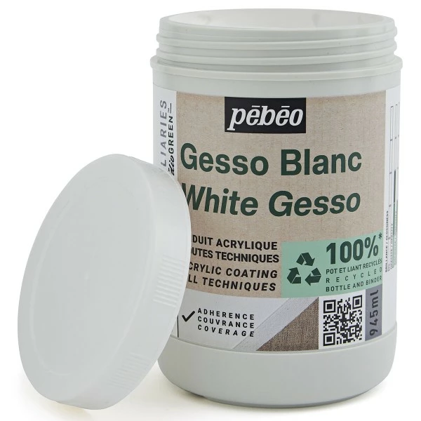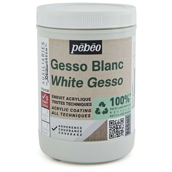 Le Gesso Pébéo Studio Green Blanc (appelé également médium, auxiliaire ou apprêt), est un enduit acrylique vous permettant de préparer vos supports à peindre en renforçant l’accroche de la peinture. Couvrant et adhérent, il s’applique sur une surface propre et non grasse.