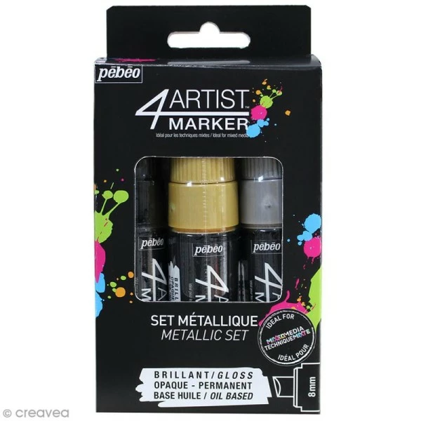 - Avec ce set Metal de marqueurs 4ARTIST MARKER, votre imagination et votre créativité n’auront plus aucunes limites ! Ces feutres à huile peuvent s’utiliser sur de nombreuses matières telles que les toiles en lin, le papier, le bois ou encore le plastique, les métaux, et en finition de peinture acrylique, ou à base de solvant, etc.