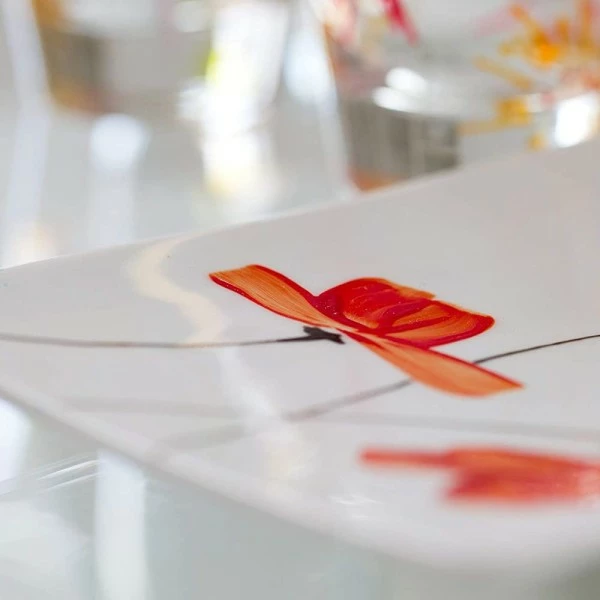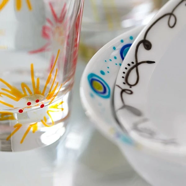 Lorsque vous avez terminé la décoration de votre objet, il vous faudra fixer les couleurs par simple cuisson à 150°C (four domestique). Après application et fixation de votre feutre, votre objet supportera le lavage au lave-vaisselle !
