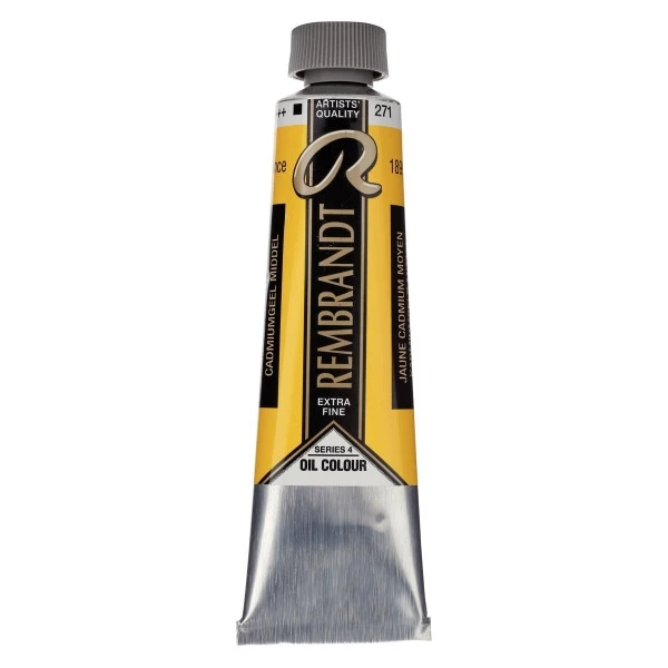 Description de Peinture à l’huile extra-fine en tube jaune cadmium moyen 40ml – Rembrandt