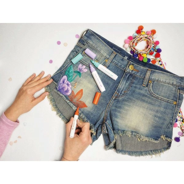 La pointe médium du marqueur permet une largeur de trait de 4,5 mm. Les couleurs sont couvrantes et lumineuses.