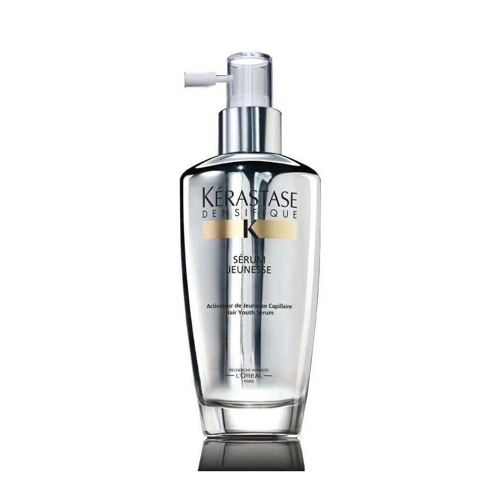 Le blanchiment est le premier effet visible du temps sur le cheveu. Malheureusement, un cheveu qui perd sa couleur perd également ses plus grandes qualités. Il s’affine, devient rêche, moins facile à discipliner et terne. La coloration permet, bien sûr, de sublimer la matière et de dissimuler les cheveux blancs mais ne redonne pas à la fibre toutes ses qualités perdues. Afin de prévenir les effets du temps sur la qualité du cheveu, Kérastase crée le Sérum Jeunesse Densifique, son premier activateur de jeunesse capillaire qui compense la perte de qualité des cheveux blancs. Grâce à l’alliance unique de l’Anti-Ox Cellular et de la Stémoxydine®, le Sérume Jeunesse Densifique lutte à la fois contre l’affinement de la fibre et la disparition des Mélanocytes, retardant ainsi la dépigmentation du cheveu.