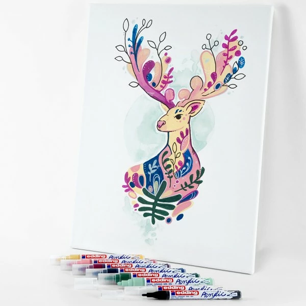 Si vous êtes adeptes de beaux-arts et peintre curieux, ces marqueurs Acrylic Edding viendront compléter votre matériel de peinture. Si vous êtes simplement passionnés de Loisirs Créatifs et DIY, ces marqueurs vous permettront de vous lancer dans la peinture acrylique en toute facilité et de créer sans limite !