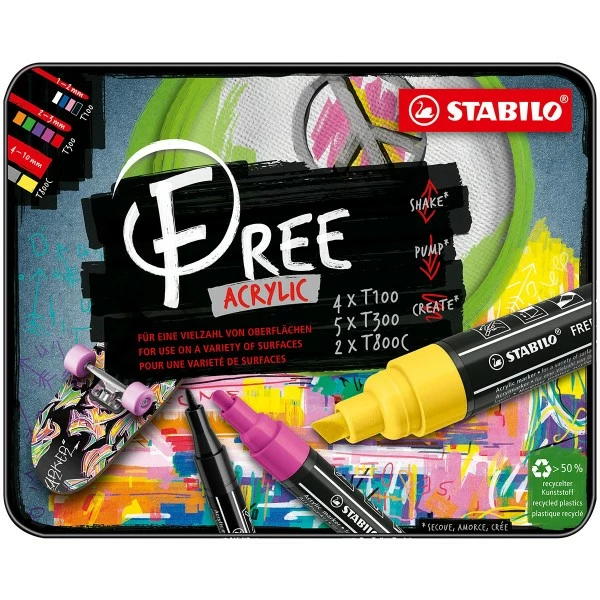 Découvrez la dernière nouveauté de Stabilo : les feutre acryliques Stabilo Free, des marqueurs peinture pour dessiner, colorier, personnaliser sans limites sur presque toutes les surfaces !