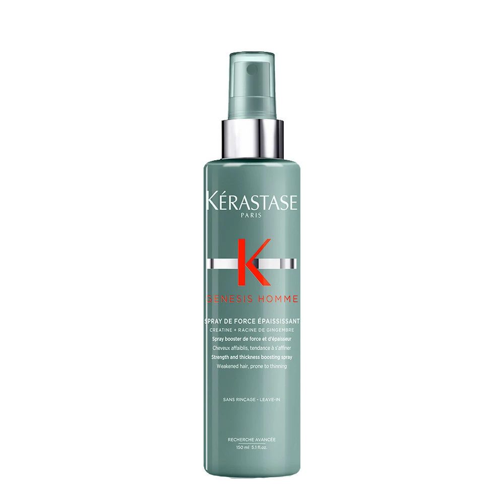 Spray De Force Épaississant Genesis Homme Kérastase 150ml : spray booster de force et d’épaisseur pour cheveux affaiblis, ayant tendance à s’affiner. À la Créatine + Racine de Gingembre.