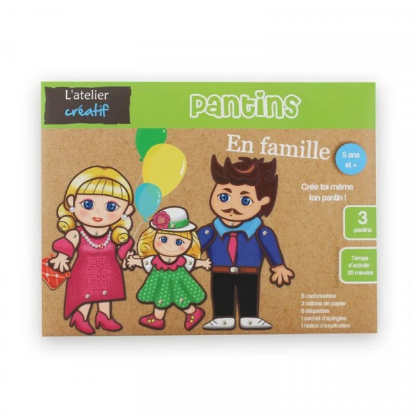 Ce coffret créatif comprend tout le matériel pour créer 3 jolis pantins. Créé ta famille et fais-leur vivre des aventures uniques.