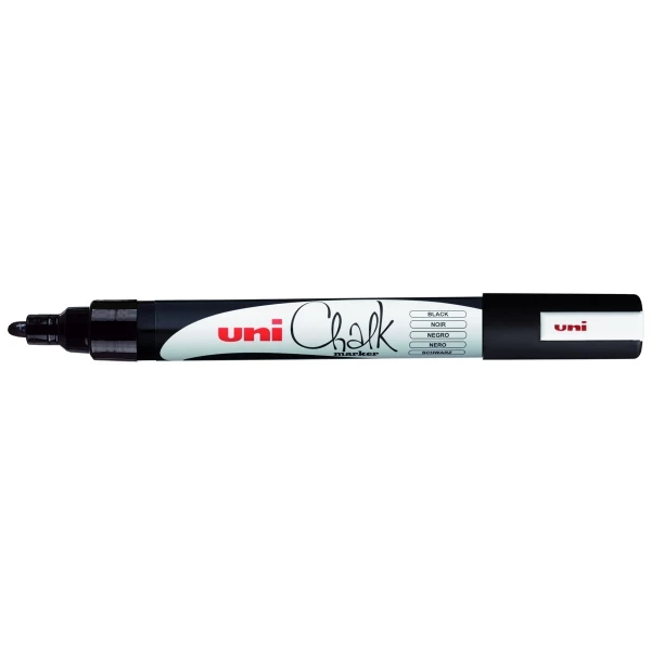 Ce marqueur craie Chalk à pointe Conique moyenne de 2,5 mm de coloris Noir est un feutre multi-usages qui vous permettra de dessiner, écrire, peindre, décorer et colorer sur ardoises mais aussi sur du verre, du plastique, et les fenêtres.