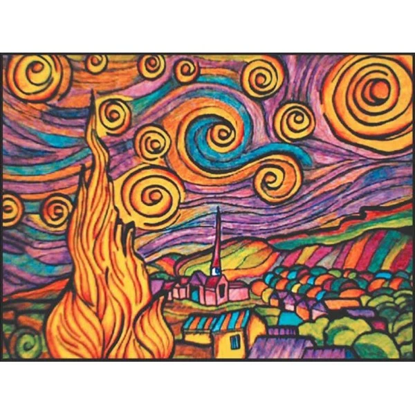 Description de Van Gogh – La nuit étoilée 12 feutres inclus – 47 x 35 cm – à colorier Colorvelvet
